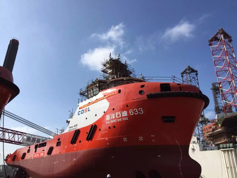 由南通豪通船務(wù)(上海事業(yè)部)在上海振華重工承接的中海油服三艘6500HP油田守護(hù)船,其中第二艘船“海洋石油633”于11161018分,順利下水。
