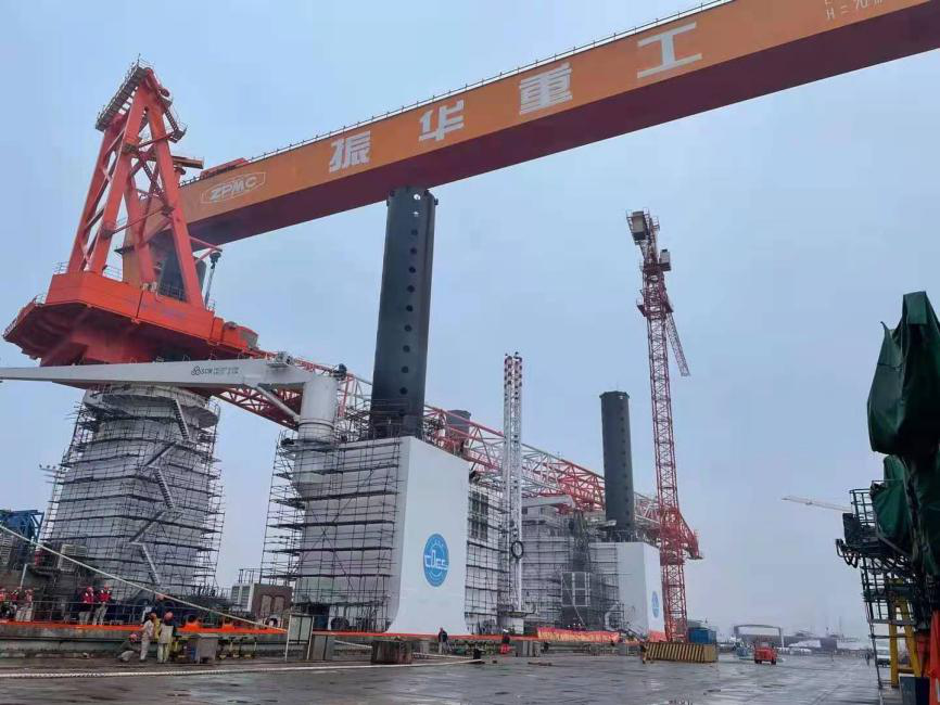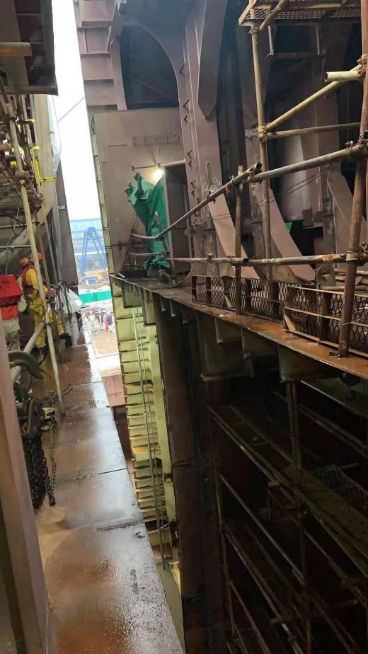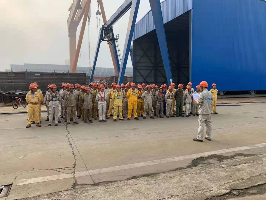 1200T風(fēng)電安裝船南通豪通船務(wù)有限公司,除承接主船體制作及合攏外。更是承接了該船三分之二的特殊結(jié)構(gòu)制作及合攏(包含3個(gè)圍井分段2個(gè)固樁室)工程。這些工程對精度和焊接質(zhì)量有著較高的要求,總經(jīng)理薛志堅(jiān)掛帥督導(dǎo),安排最優(yōu)秀的裝配班組和最好的焊工,將一份優(yōu)異的成績單交到了船東和振華重工手中,得到了業(yè)主的肯定。