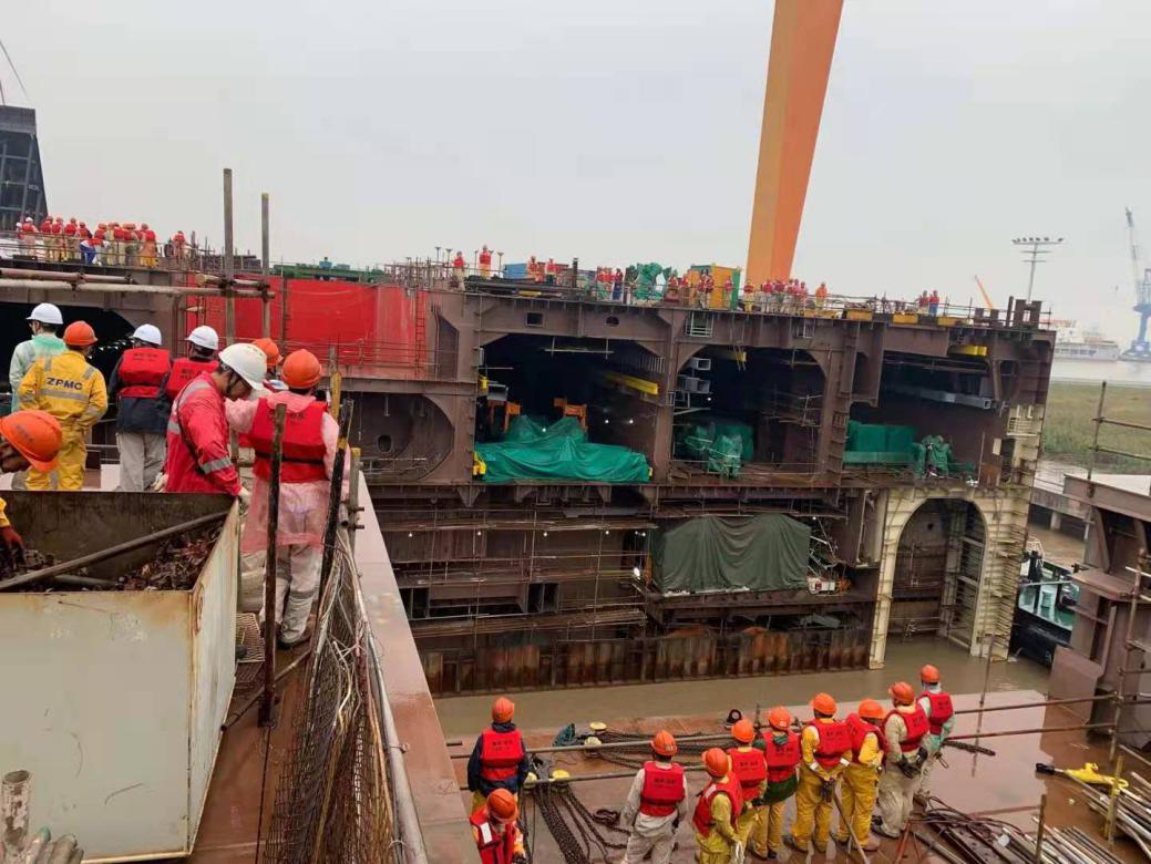南通豪通船務(wù)有限公司承接了“JSD6000鋪管船”總段對接合攏工程。針對該項(xiàng)工作量大,環(huán)境復(fù)雜,工期緊的特點(diǎn),公司“調(diào)兵遣將”安排最優(yōu)秀的班組負(fù)責(zé)該工程,各級(jí)人員也充分發(fā)揮不怕苦,不怕累的精神,夜以繼日、保質(zhì)保量的完成了振華重工安排給我們的任務(wù),確保了該船能夠順利下水,同時(shí)公司也受到振華和船東一致好評(píng)。